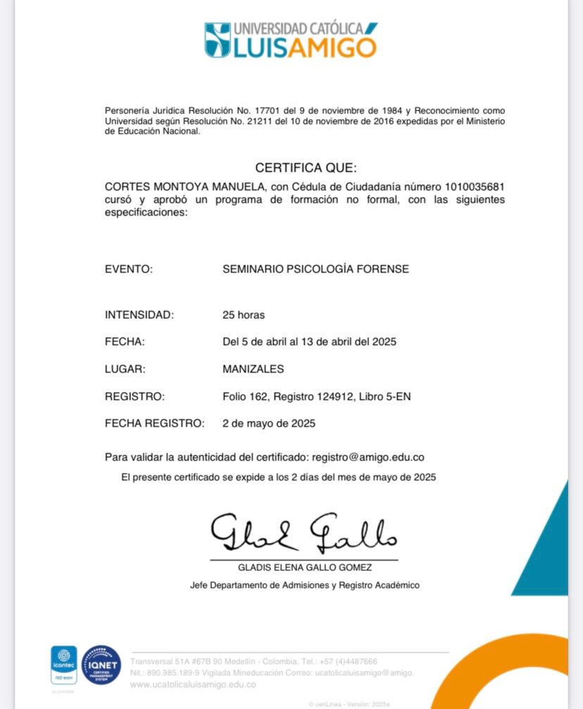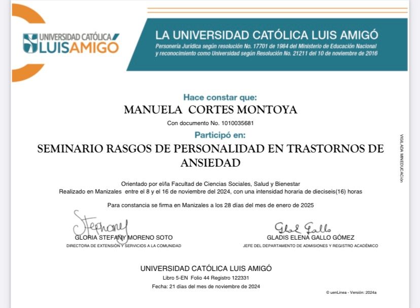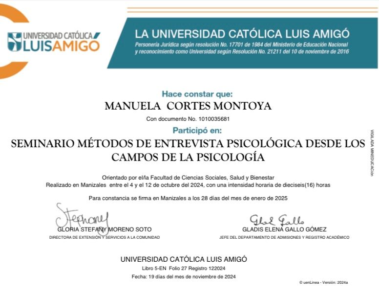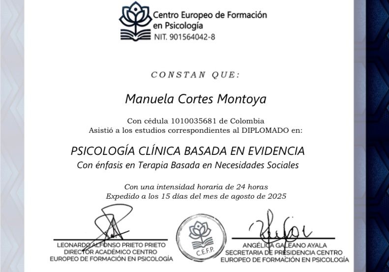 He acompañado procesos en contextos organizacionales, sociales y clínicos, lo que me ha permitido ampliar mi mirada y enriquecer mi quehacer terapéutico.